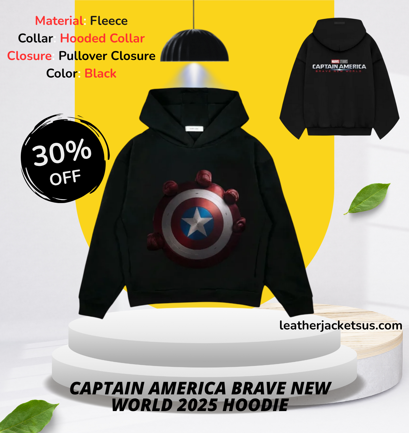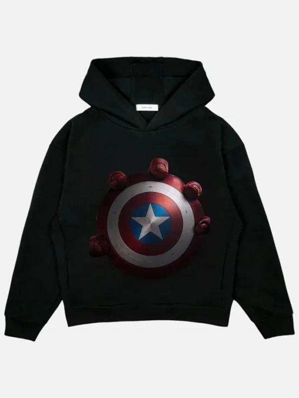 Recreation – Captain America: Brave New World 2025 Shield With Hand-Printed Black Hoodie