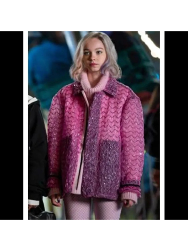 Emma Myers as Enid Sinclair in Wednesday Pink Bubble Wrap Jacket is not just an outerwear item, but a proclamation of individuality, creativity, and fandom. This jacket is inspired by one of the most memorable characters of the series, and it will enable you to introduce the playful nature of Enid into your wardrobe.