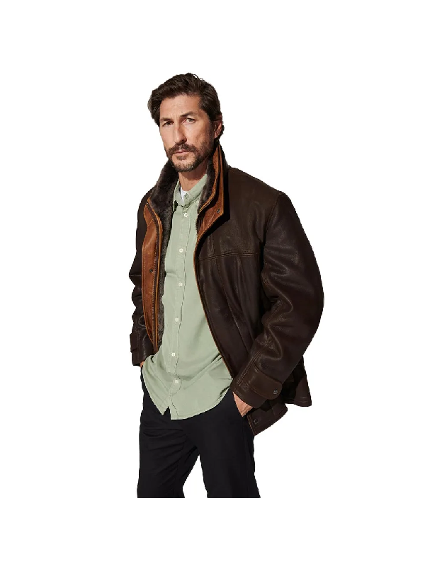 The coat’s rich leather exterior provides a polished, masculine look that is both modern and classic, while the plush shearling lining delivers unbeatable warmth even in the coldest conditions. Inspired by alpine heritage, this shearling leather coat is built to withstand the elements, making it perfect for harsh winters, outdoor adventures, and city wear alike.