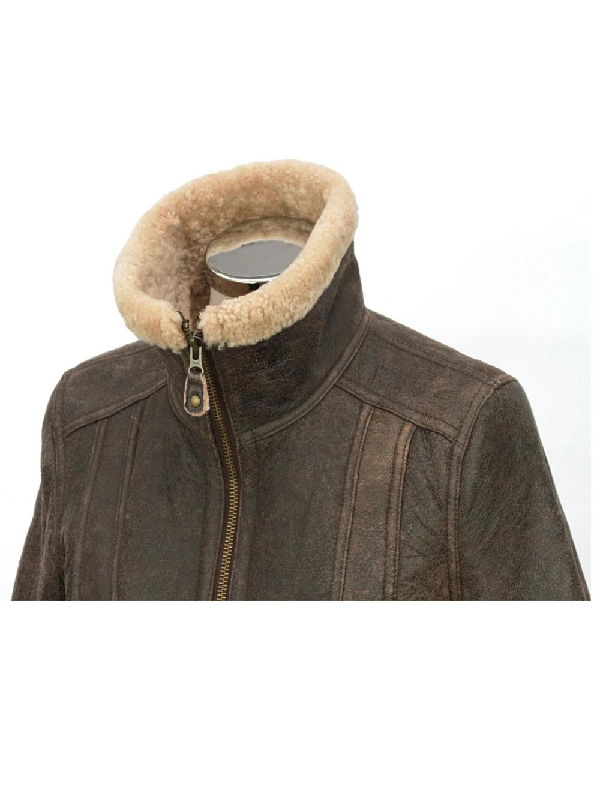 The women shearling aviator jacket is a slim-fitting jacket that fits your body in a flattering way and has enough space to be worn over. The broad shearling collar has an adjustable coverage that can be worn open to become a statement piece or be worn closed to add additional warmth. Buckle straps, zippers, and accurate stitching demonstrate quality workmanship that can be used over the seasons.